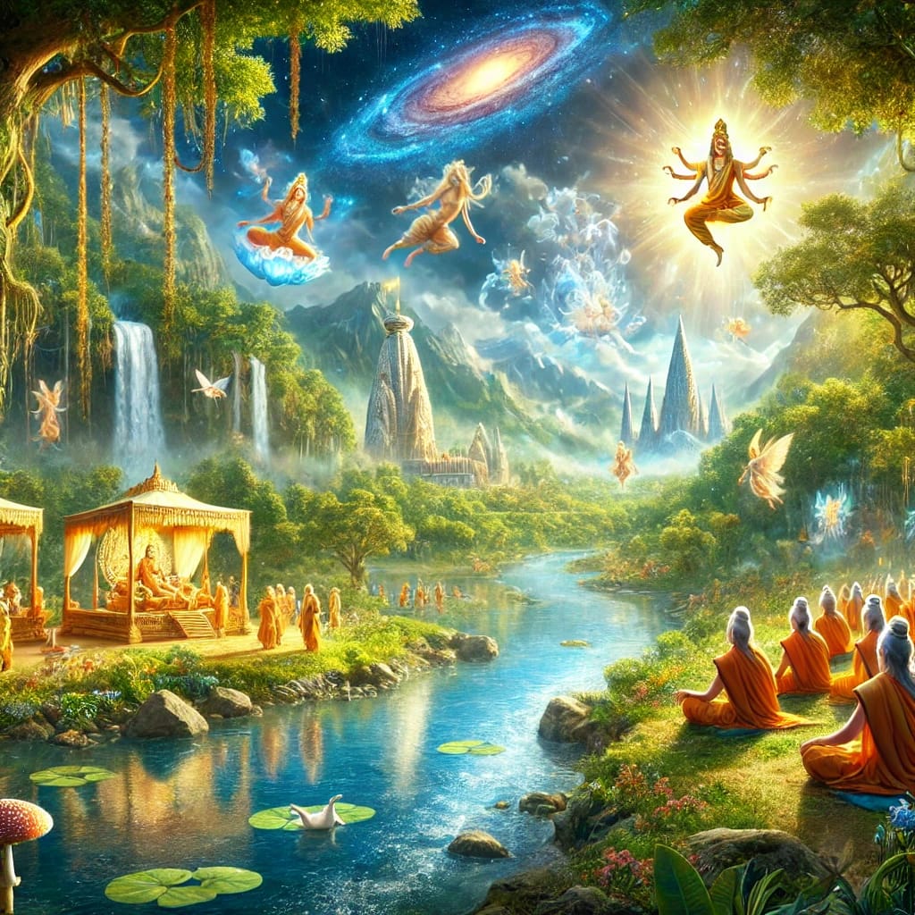The age of truth and righteousness, where dharma (virtue) is at its peak, and humans live long, pure lives in harmony with the divine.